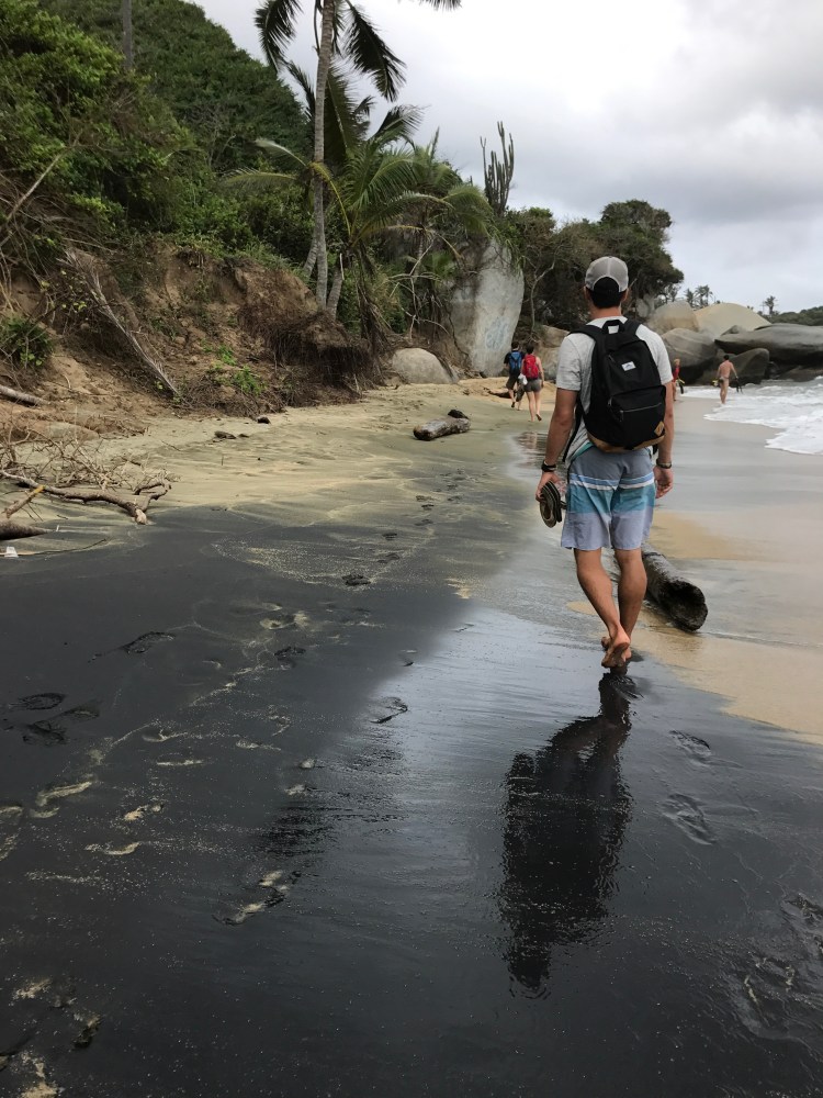 The next morning, we took an exhilarating boat ride back to Cartagena. Once again, we saw a slightly disfortuned place that I don’t believe many visitors see in the city and that was garbage filled neighborhoods and marinas. There was a grassy park that otherwise was quite pleasant, if not for the garbage bags, old paper ads, food containers, etc. While it was a bit disheartening, it was fleeting and before we knew it we made our way to the bus station and took a ride to the town of Santa Marta. We arrived to a beautiful room in the hostel there with AC and clean dry sheets. It was definitely something we’d been craving since we arrived in the beaches up north.