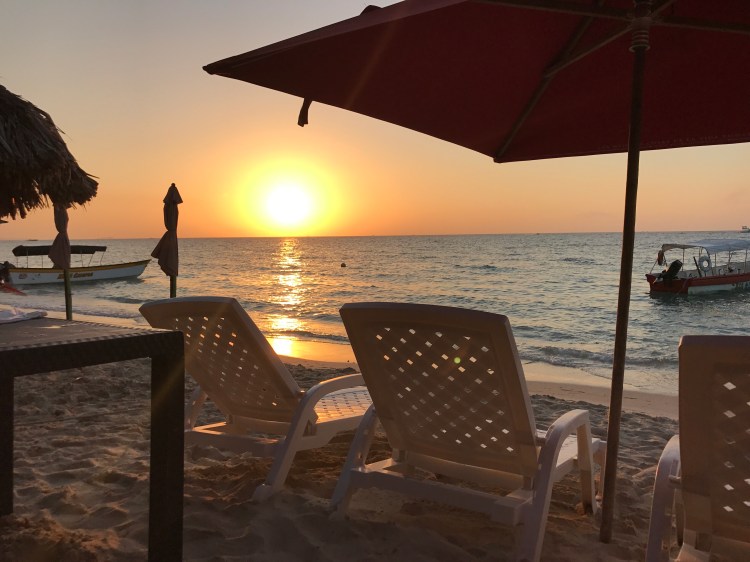 It was a disappointing view of perhaps more typical life for local people in this land. I admit I became frustrated not by the drive which took substantially longer, but by the manner in which the police handled themselves. Things like this happen all the time and not just in foreign countries, but it is quite difficult to see when it’s happening in front of you. But that was not going to discourage us! Arriving at the island, we trudged 1 1/2 miles through a crowded and sandy beach to finally get to our eco-hotel. And the beach was beautiful. Nearing sunset, the beach cleared itself of many of the day trip beach goers and we could appreciate this fact even more. Now it felt more like a private beach with each hotel having a small section of sand and water that you could enjoy almost exclusively. The first day, we swam in that crystal clear blue water, ate at one of the beach restaurants with our feet on the sand and food in our mouths, and met the most adorable dog that I’d be more inclined to describe as a deer. It was a hot but enjoyable day.