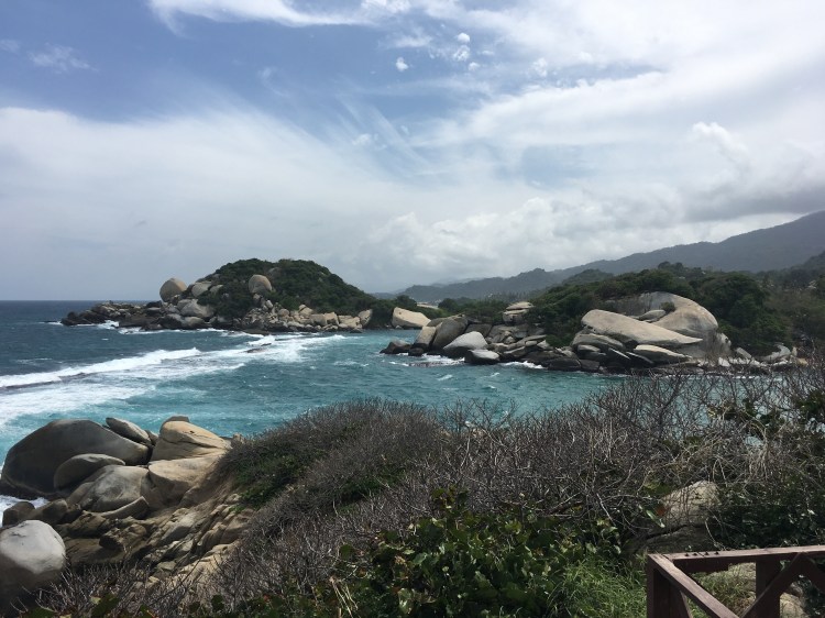 The following day was another adventure filled one with a ride to the nearby Parque Nacional Tayrona. If you’ve ever seen an ad for Colombian tourism, it’s likely you’ve seen images of this place. It takes up a long stretch of beach with incredible boulders and greenery surrounding the whole area. Not to mention beautiful white sand and water as blue as the sky to add to the ambiance. The most popular and well known beach was at the far end of the park so we took a long walk to the end where we came to a cabaña on top of a rocky bluff where winds howled past with views abound. It was a fascinating day that we ended with great feelings of hunger. So upon returning to the hostel we found a nearby restaurant to quiet our stomachs’ pangs.